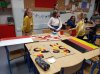 Vor der Schule wurden wir schon von den Lehrerinnen Kinga und Monika und von 14 Schülern aus verschiedenen Klassen erwartet. Zuerst begrüßte uns die Schulleiterin Frau Schulz und wir überreichten unsere Gastgeschenke. Nach einem Kennenlernspiel in englischer Sprache gab es einen Schulrundgang. Wir erfuhren, dass die Schule schon mehr als 85 Jahre alt ist und dass in den letzten Jahren viel modernisiert wurde. Die Klassen 1 bis 3 lernen in einem anderen Schulgebäude und in dieser Schule lernen die Klassen 4 bis 8, insgesamt mehr als 1000 Schüler. Anschließend ließen wir uns eine leckere Suppe und Hamburger schmecken. In der Schulküche wird noch selbst gekocht. Kinga stellte uns nach dem Mittagessen die Aufgabe, Buchstaben mit den Farben der polnischen und der deutschen Flaggen zu bemalen. Die Buchstaben stellte sie zu den Städtenamen Opalenica und Storkow zusammen. Nun soll daraus eine Fotoecke über unsere Partnerschaft entstehen. Bis zu einem Stadtrundgang spielten wir noch einige Spiele, alles in Englisch, weil uns das leichter fällt. Die Schüler in Polen lernen Deutsch erst ab der 7. Klasse, wenn sie wollen. Das Wetter ließ uns leider ein bisschen im Stich; Regen und Kälte, typisch November. Den Tag beendeten wir mit einem Abendessen in unserem Hotel in Porazyn. Sehr lange waren wir nicht mehr unterwegs. Um 22:00 Uhr war Nachtruhe.