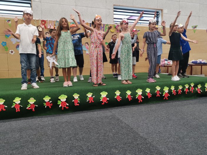 In jedem Jahr ist der Tag an Aufregung nicht zu überbieten. Neugierig und gespannt auf das Schulleben kamen unsere Schulanfänger mit ihren Familien am 26. August 2023 in unsere Mehrzweckhalle zur Einschulungsfeier. Hübsch herausgeputzt war die Sporthalle. Die Kinder der Klasse 4c hatten mit ihrer Klassenlehrerin Frau Wohlfahrt ein vergnügliches Bühnenprogramm vorbereitet und mit großem Einsatz dargeboten. Unsere ABC -Schützen wurden zur Einschulungszeremonie auf der Bühne von ihren Klassenlehrerinnen und Horterzieher*innen und unserem gefiederten Freund „Storki“ feierlich in unsere Schulgemeinschaft aufgenommen. Wir wünschen allen Lernanfängern in den zwei Regelklassen und den vier Flex-Klassen eine erfolgreiche und glückliche Schulzeit an der Europaschule in Storkow. Ein herzliches Dankeschön gilt unserem Storki, den Schulsekretärinnen, dem Hausmeisterteam sowie den Lehrerinnen, die ausdauernd beim Schmücken und Dekorieren halfen und den Einlass managten. Dank sagen möchten wir auch unserem Kollegen Herrn Nichelmann, der sich um die Technik kümmerte, Frau Wohlfahrt und der Klasse 4c und dem Erzieherteam des Horthauses „Würfelkids“, die uns wie in jedem Jahr bei der Schulaufnahme unterstützten.